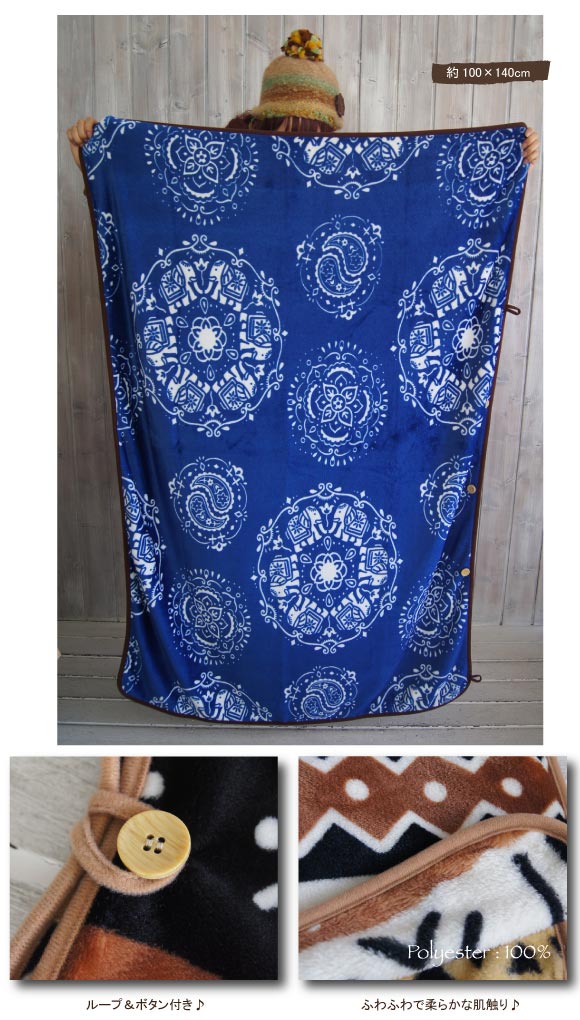 ブランケット ララッカボタン&ループ付きエスニックアジアン【ネコポス不可】